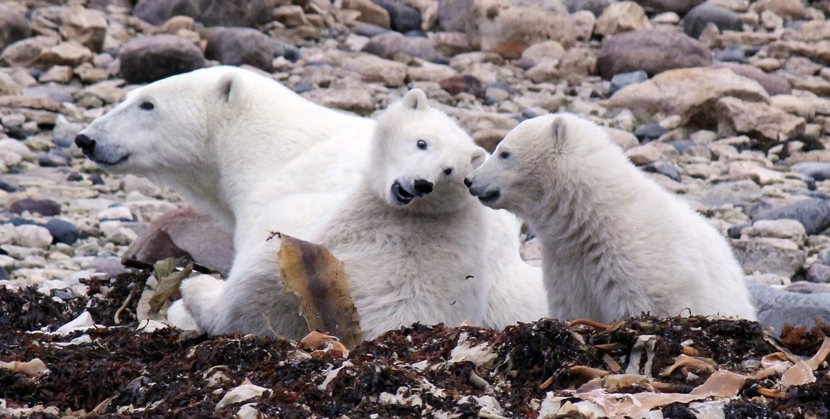 Mother resting with twins from Great White Bear Tours Buggy on Natural Habitat Adventure Tour in Churchill Manitoba